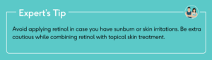 One of the effective retinol uses for skin is to use it with your moisturizers. This helps dilute the ingredient and is an excellent way for sensitive skin to get used to retinol. You can also choose to apply moisturizers first and then retinol. Over time, you can start applying retinol directly on the face.
