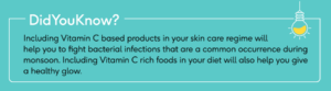 Some people will also experience drying out of their skin during the monsoon because we tend to lose a lot of water content due to intense sweating and not replenishing the fluid levels by drinking enough water.