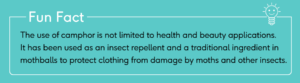 Camphor has long been used as a natural alternative for achieving healthy and attractive hair. Camphor has excellent antibacterial and antifungal properties, which are ideal for hair care routine and improving scalp health. So, it’s true camphor is good for hair.